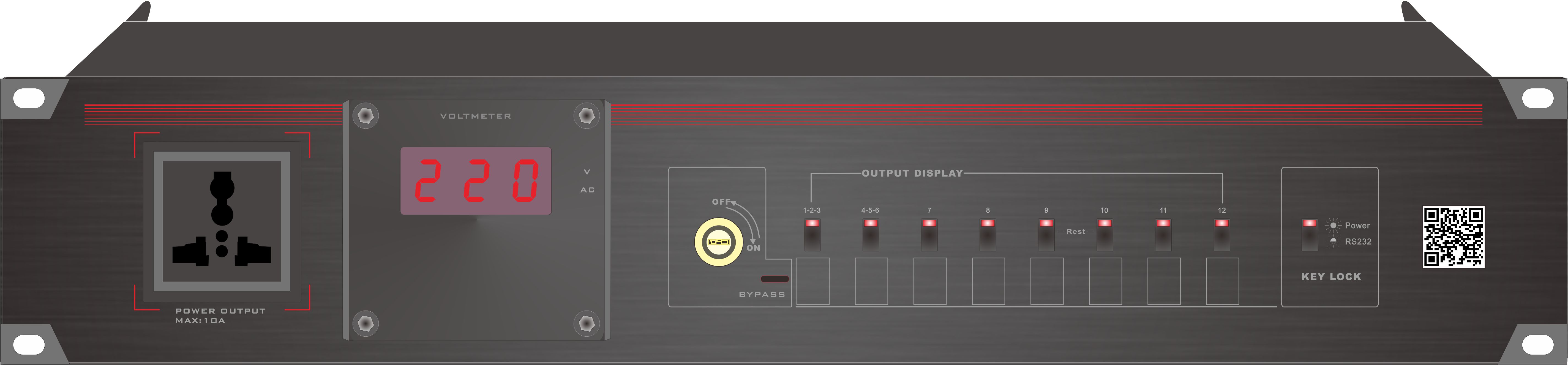 2、12路電源時序控制,每路延時1秒,可選擇為3秒、5秒、10秒30秒、1分、10分??稍O(shè)置延時10分鐘關(guān)閉,給投影機提供更好保護。